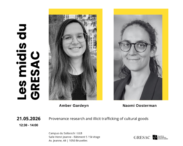 Nous enchaînons ensuite avec notre séminaire mensuel "Les Midis du GRESAC", autour d’un lunch léger. Nous aurons le plaisir d’accueillir Amber Gardeyn (UGhent) et Naomi Oosterman (Erasmus University Rotterdam).
