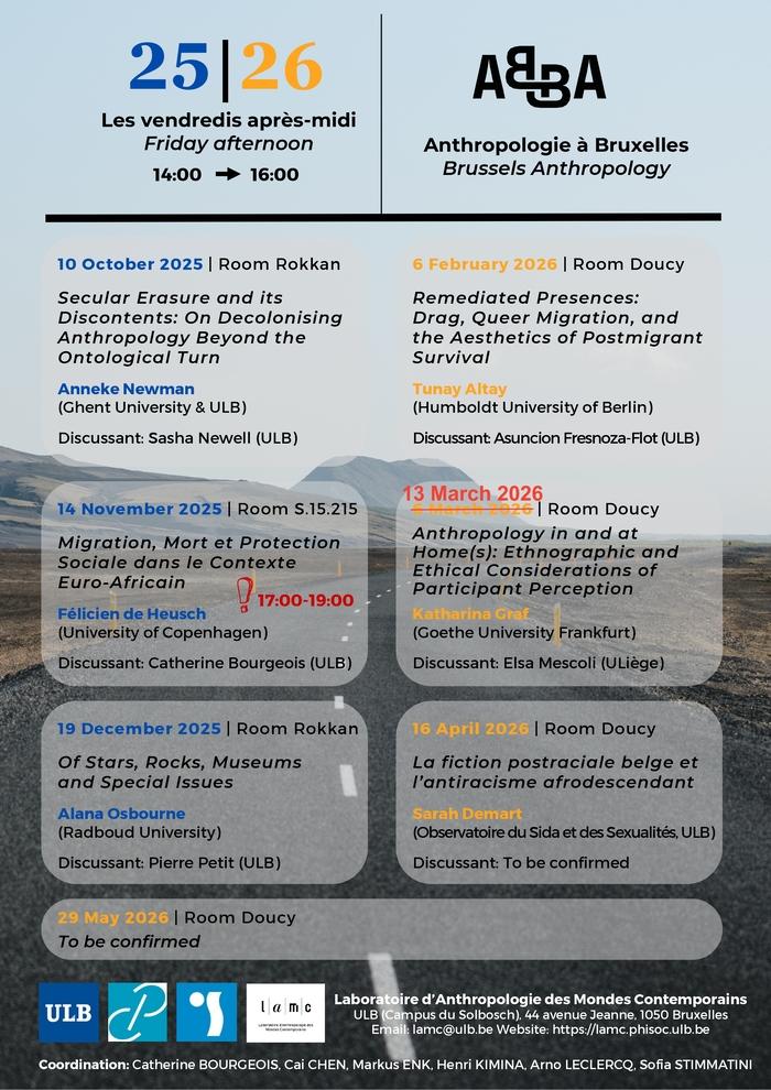 Katharina GRAF (Goethe University Frankfurt) « Antropology in and at Home(s) : Ethnographic and Ethical Condiderations of Participant Perception ». Discussant : Elsa MESCOLI (ULiège)